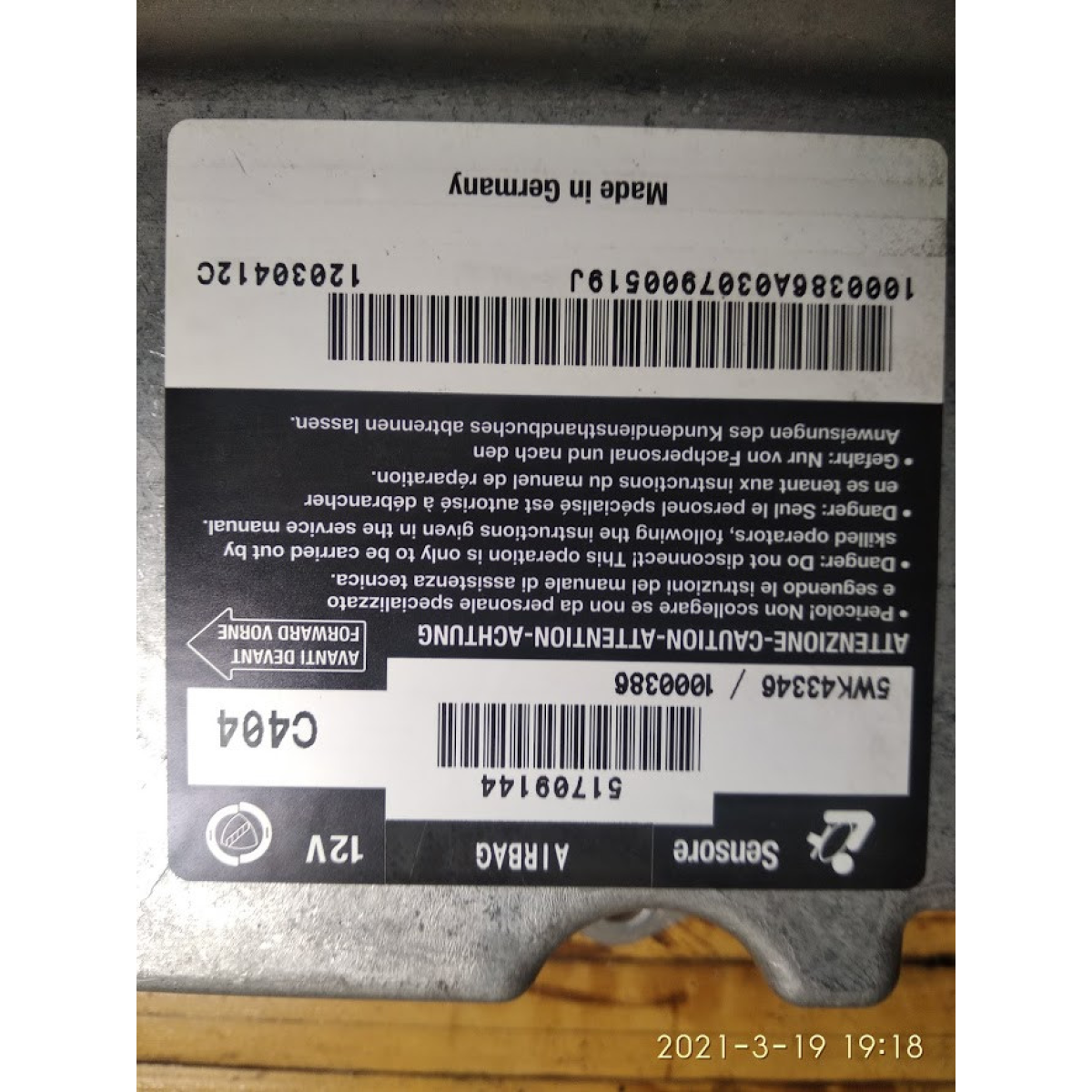 Сенсор Airbag Fiat Stilo 51709144
